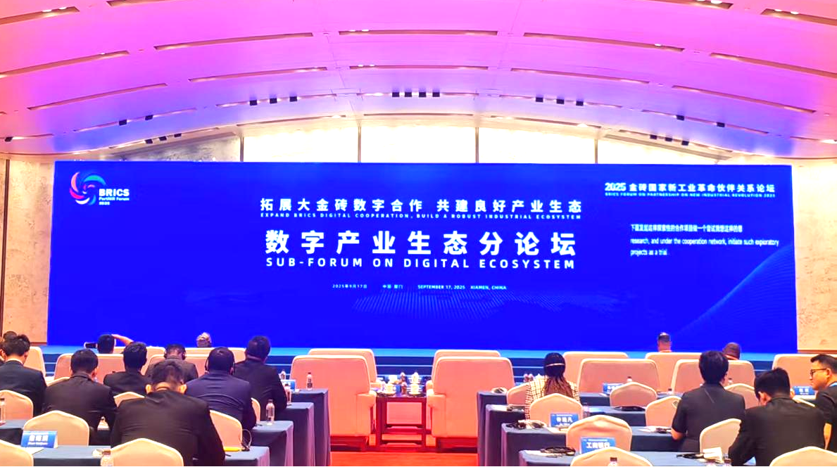 2025年9月17日,由工业和信息化部和福建省人民政府共同主办的“2025金砖国家新工业革命伙伴关系论坛•数字产业生态分论坛”在厦门市国际会议中心酒店成功举行。赛宝认证中心受邀做主题演讲,为金砖各国介绍中国数字化转型标准化实践经验,与金砖国家共同探索全球数字化转型合作新路径。